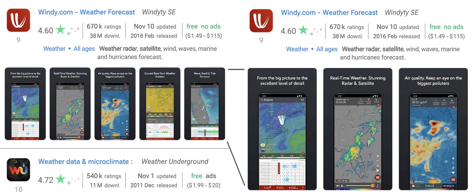 As you see from the examples below, local ratings are available for only a fraction of the apps for which global ratings are available.